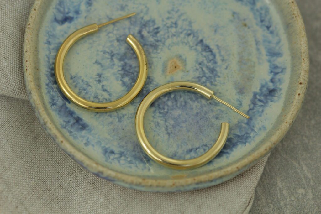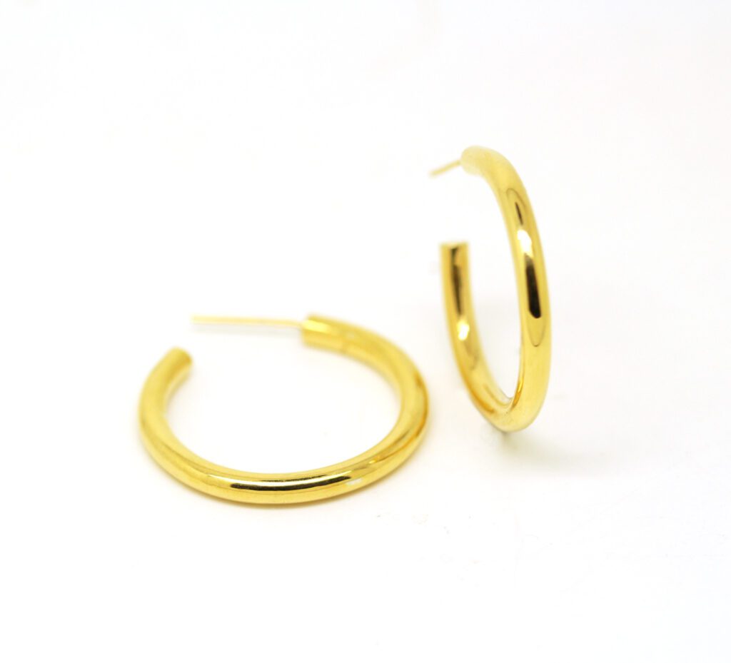 You’ve found them. Your faithful hoops. The ones that go with anything. Also available in sterling silver and 9ct solid gold.