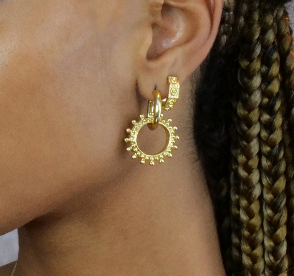 The wide awake necklace is an incredibly unique piece inspired by the ancient protective symbolism of the evil eye. This talisman sits on a stunning 24 inch satellite chain and will instantly draw everyone’s eye. Also available in sterling silver and 18ct gold vermeil. Pendant dimensions – 18mm x 13mm.