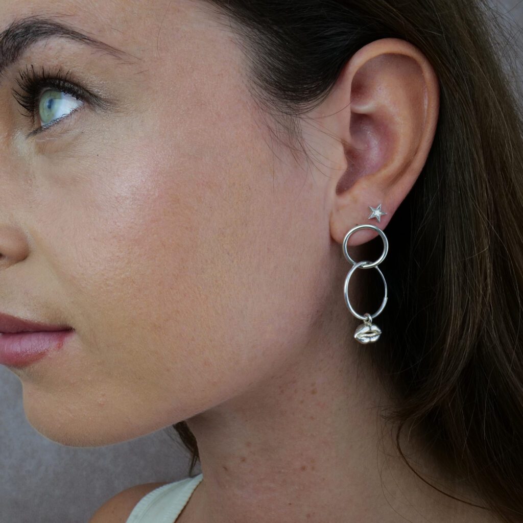 Wear these playful Lips earrings 4 ways, remove the hoop and lip charm and you have an additional pair of gorgeous hoops studs. Adaptable pieces to wear from day to night. Also available in 18ct gold vermeil.