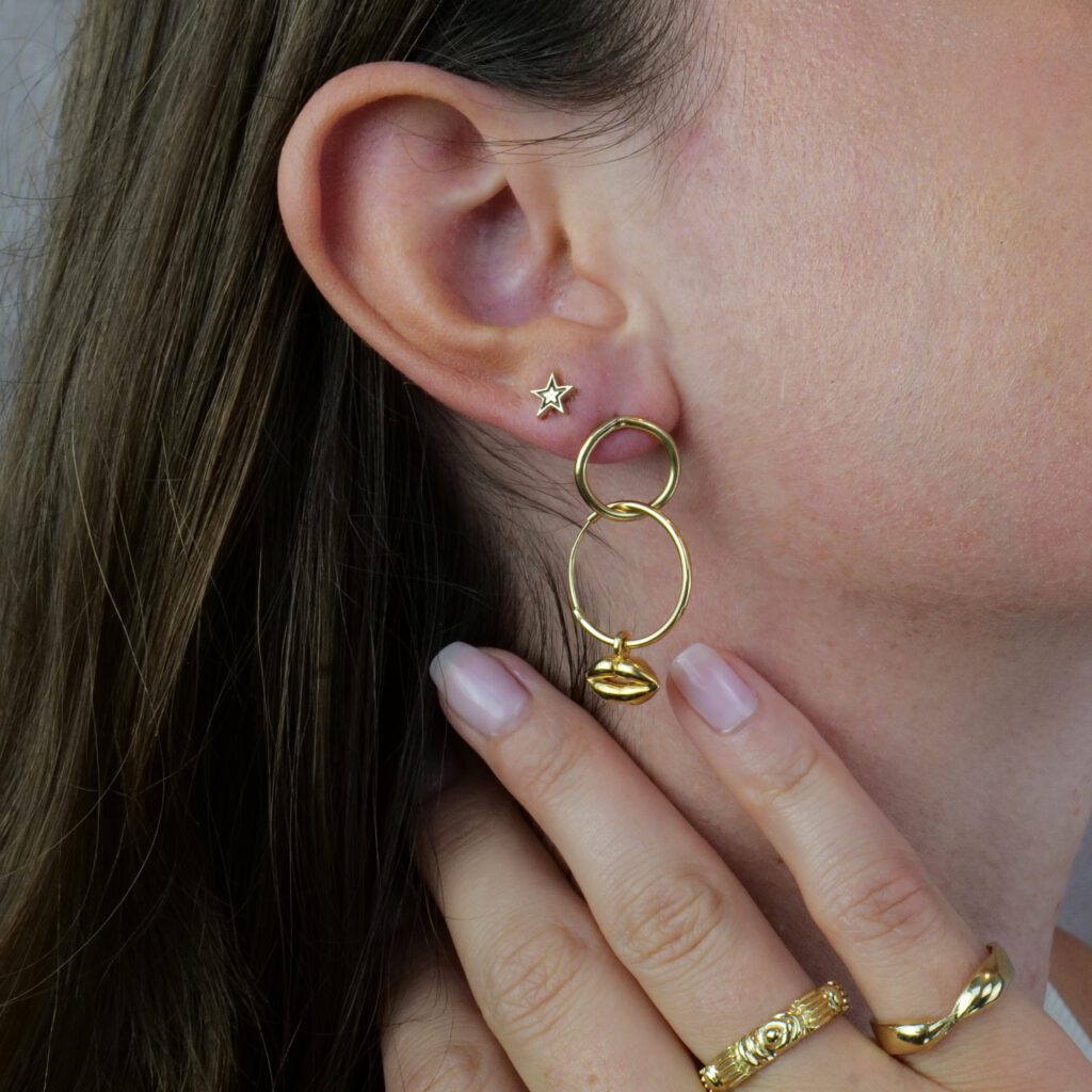 Wear these playful Lips earrings 4 ways, remove the hoop and lip charm and you have an additional pair of gorgeous hoops studs. Adaptable pieces to wear from day to night. Also available in sterling silver.