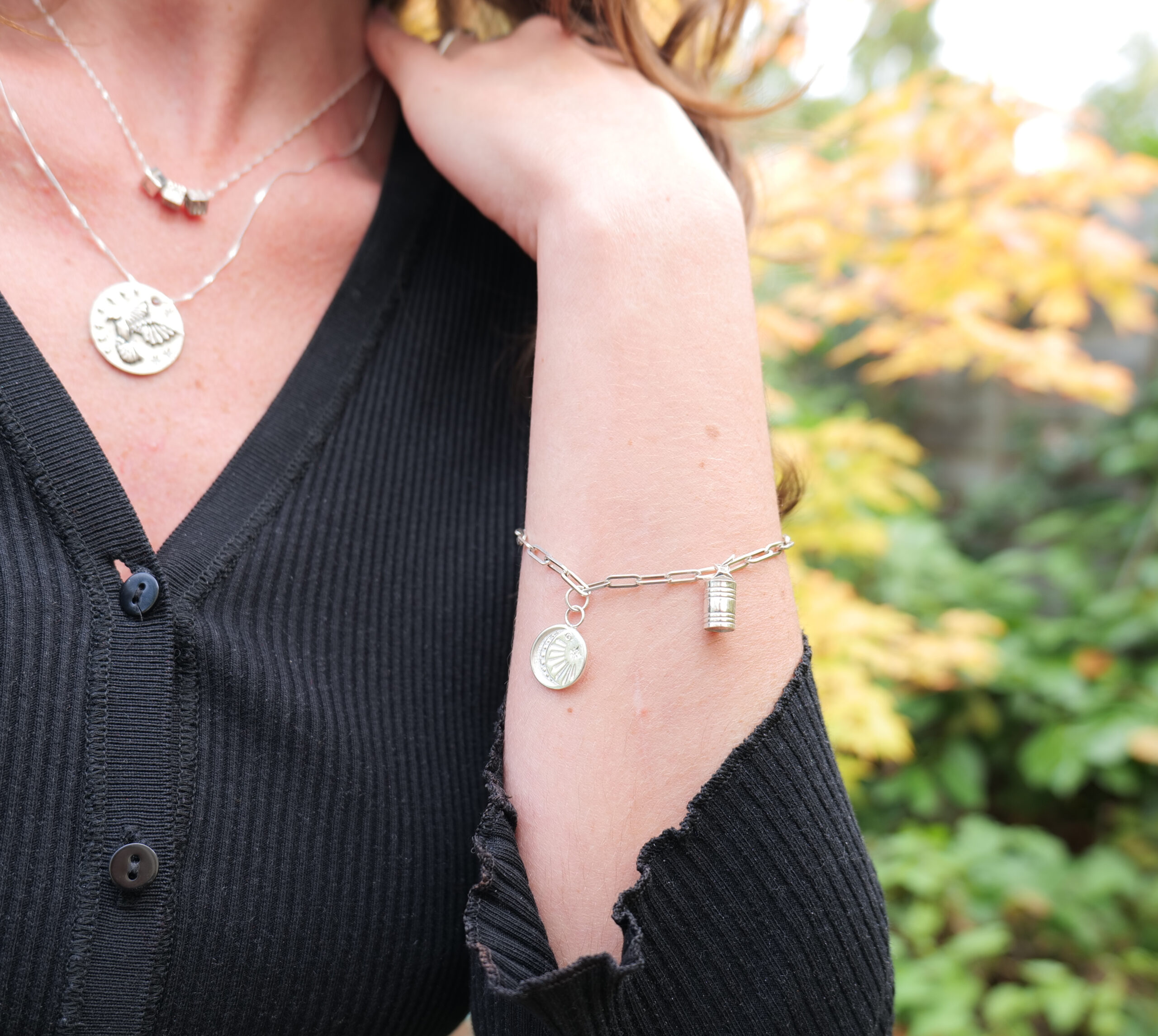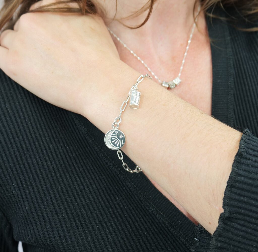 The perfect arm candy, this gorgeous charm on a paperclip chain has a stunning star set gemstone. Add a personalised engraving on the back. Choose to buy it alone to add to an existing chain or contact me to add a bracelet or necklace. Available in sterling silver and 9ct solid gold. Charm dimensions – 15 x 15mm.