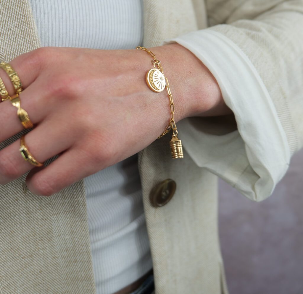 The perfect arm candy, this gorgeous charm on a paperclip bracelet chain has a stunning star set gemstone. Add a personalised engraving on the back. Contact me to hang it from a necklace instead. Available in sterling silver and 9ct solid gold. Charm dimensions – 15 x 15mm.