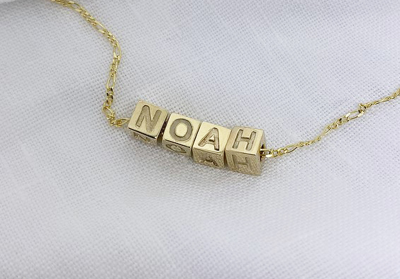The name dice necklace is also available in Sterling Silver and 9ct solid gold.