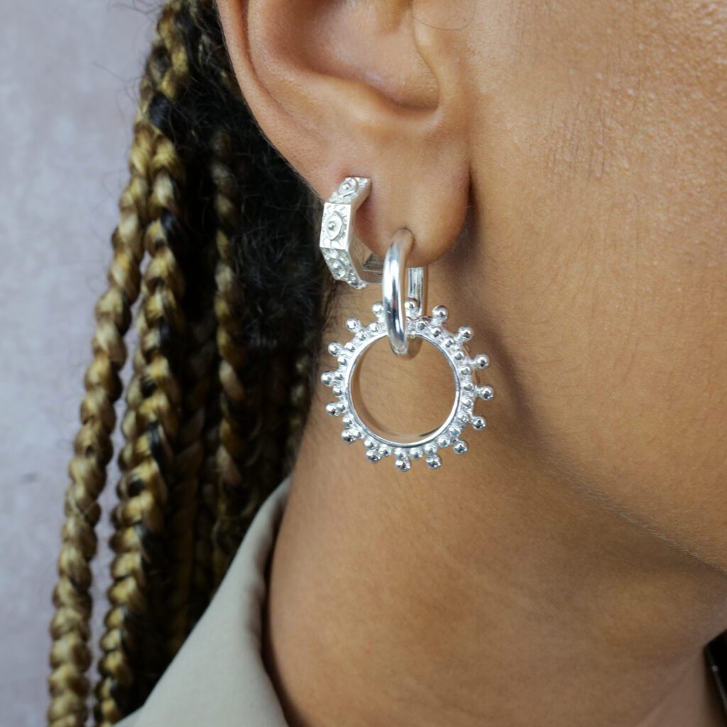 Whether you’re soaking up the sunshine or dancing under the stars, these earrings are the perfect party companion. Designed to adapt to your mood and moment, these earrings feature a removable sun charm, transforming them from bold statement to minimalist staple in seconds.