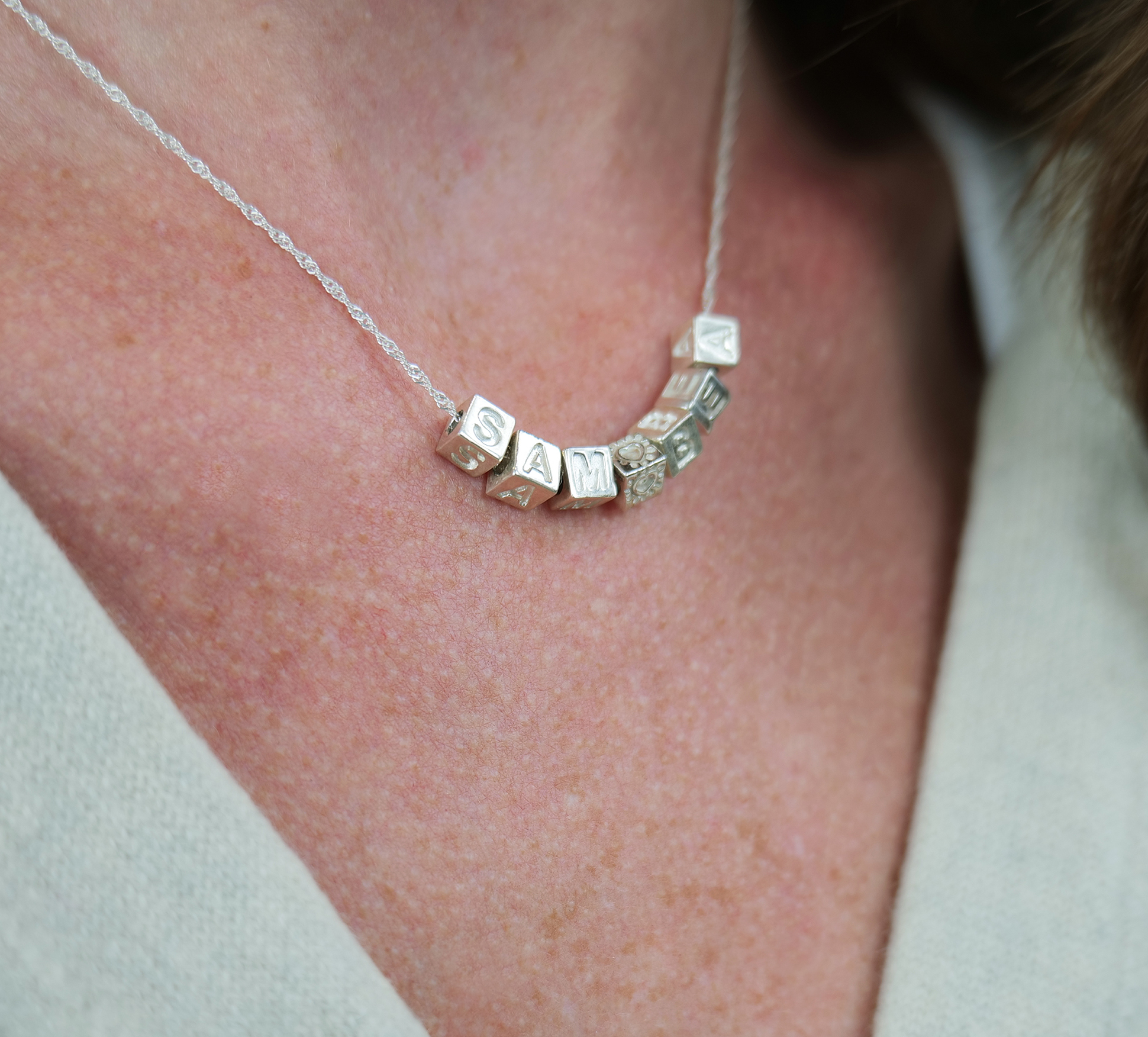 £385 Personalise MeName Dice NecklaceSterling Silver