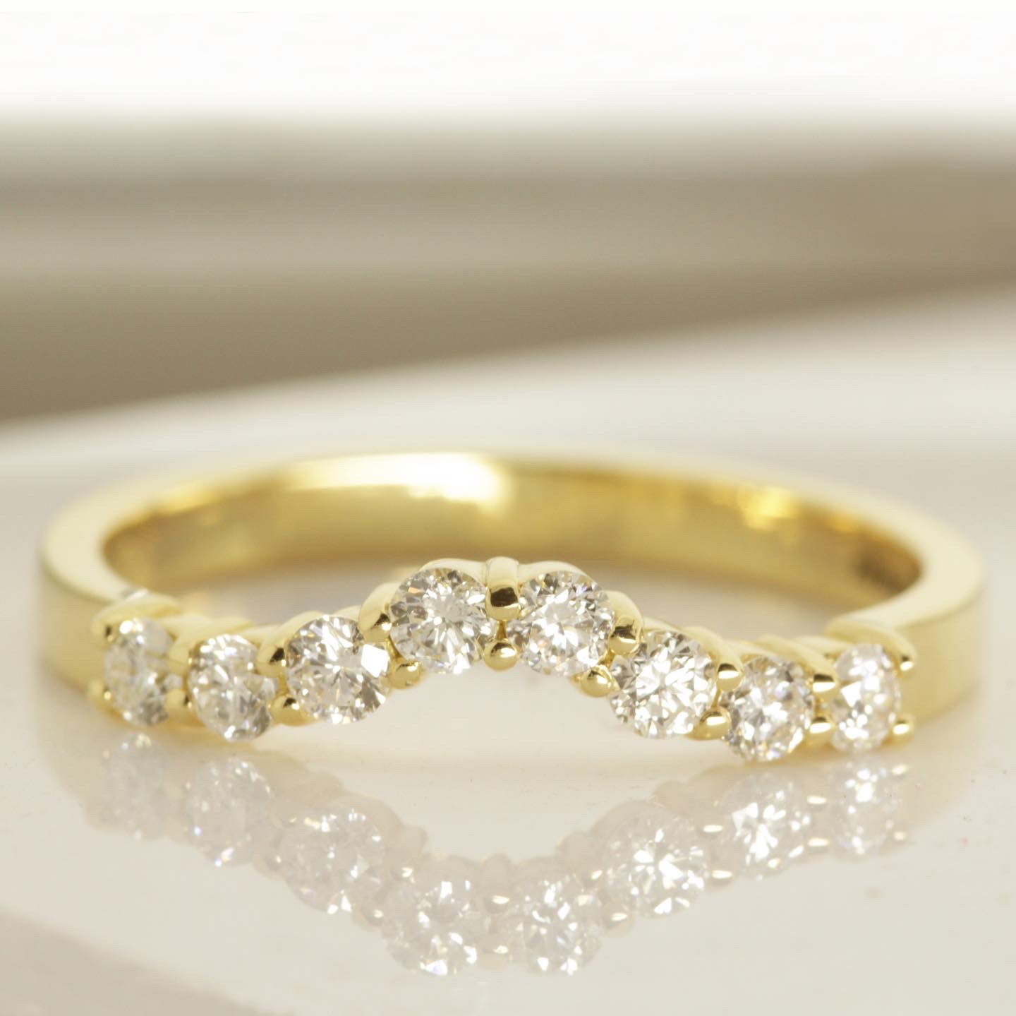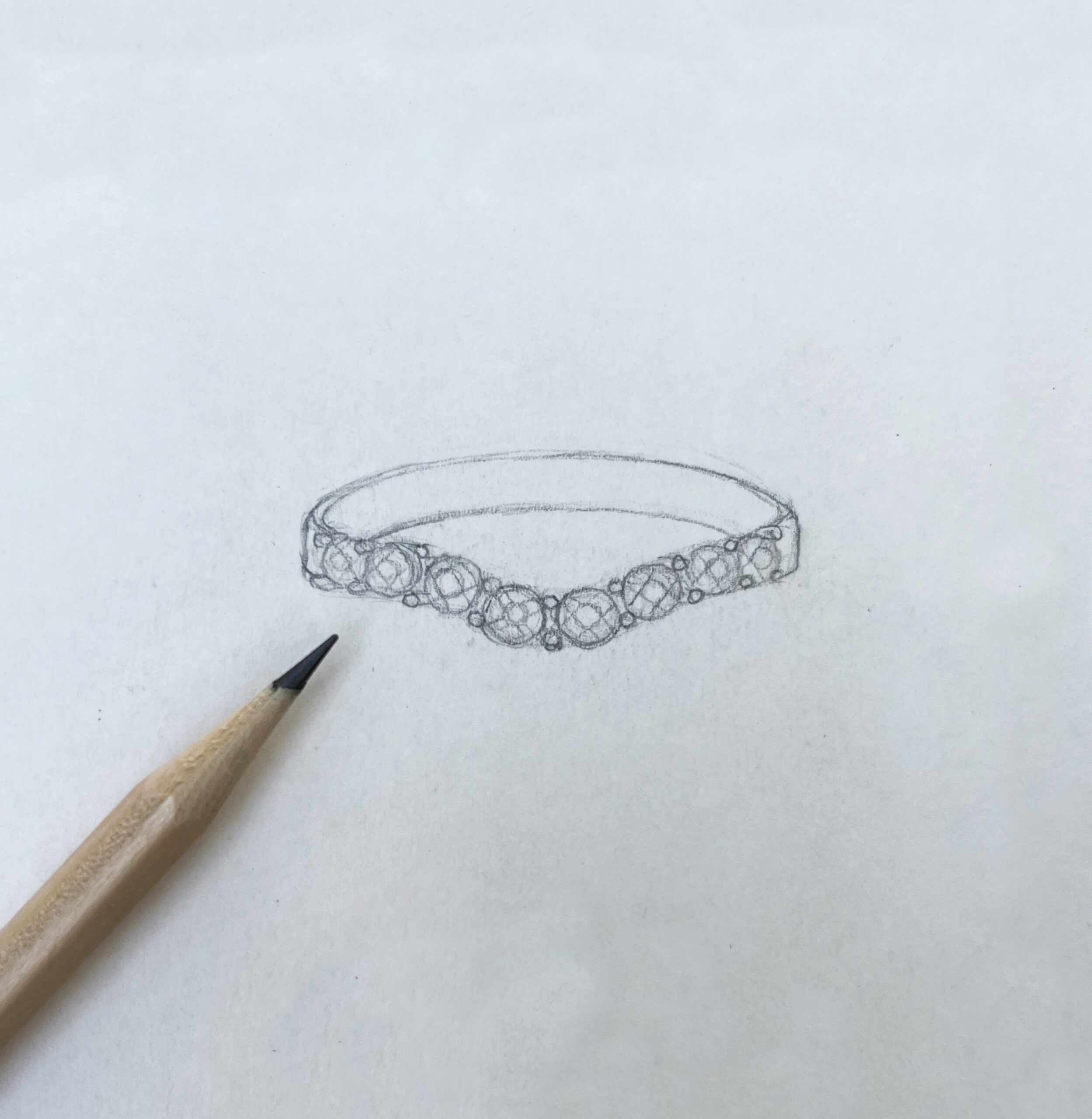 She wanted an 18ct yellow gold ring with lots of diamonds and a style which would wrap under the marquise diamond on her engagement ring. I sketched up some design options and she chose her favourite.
